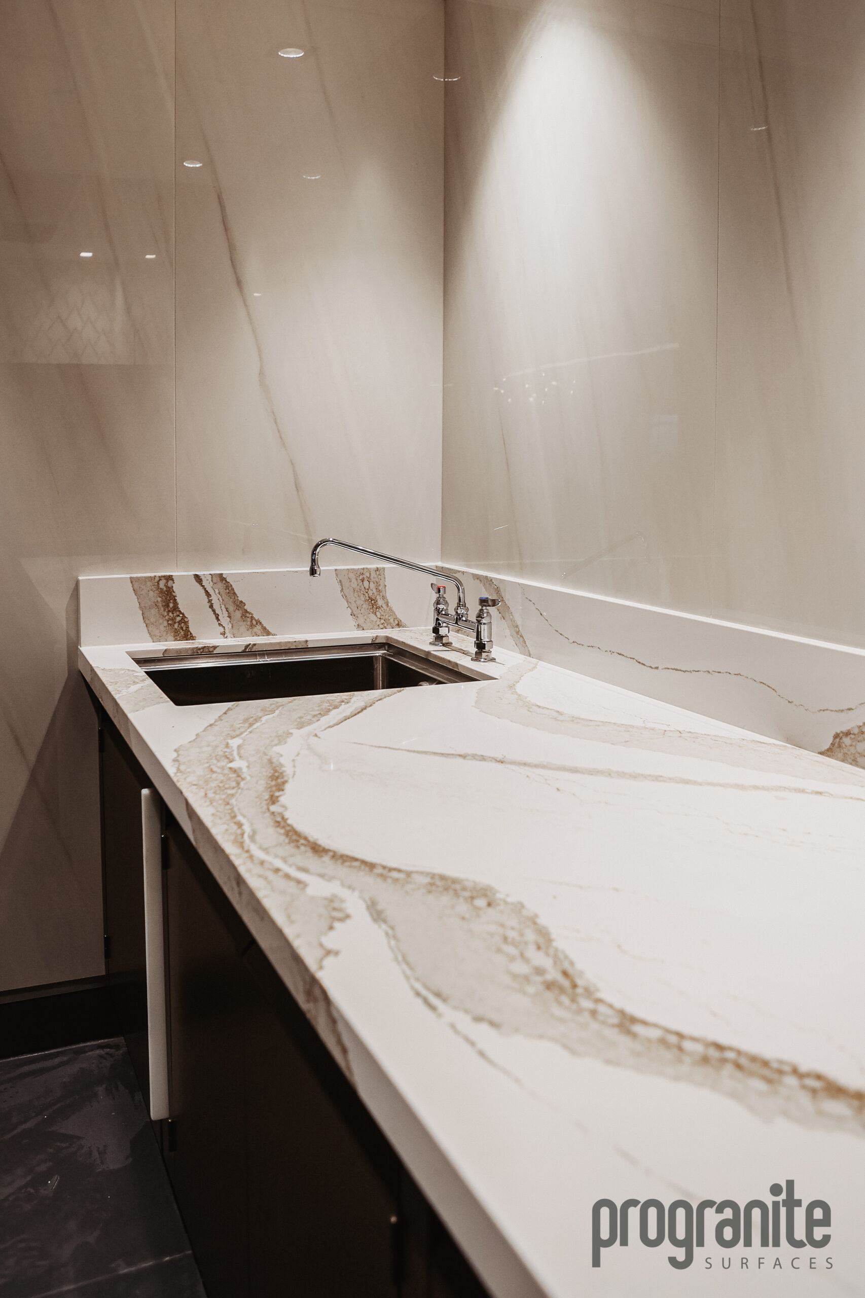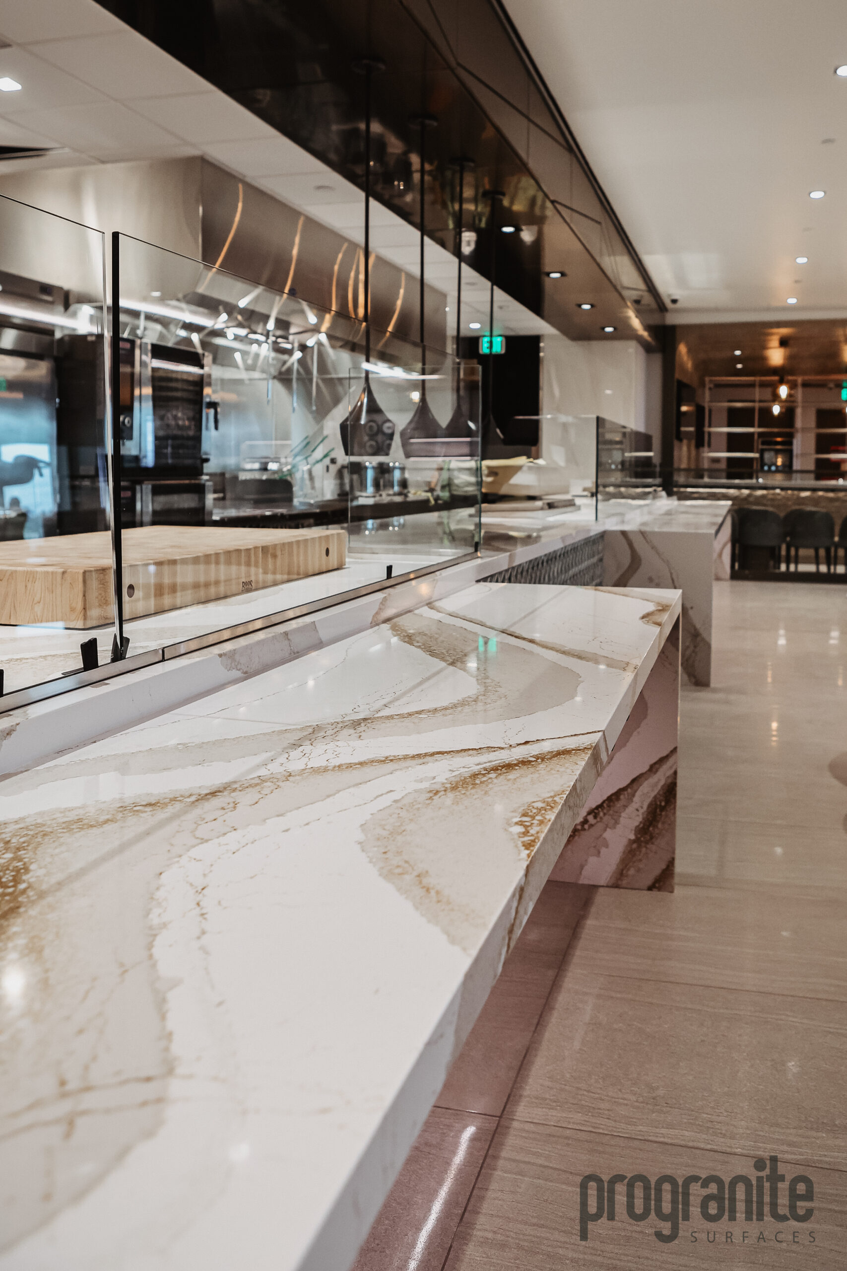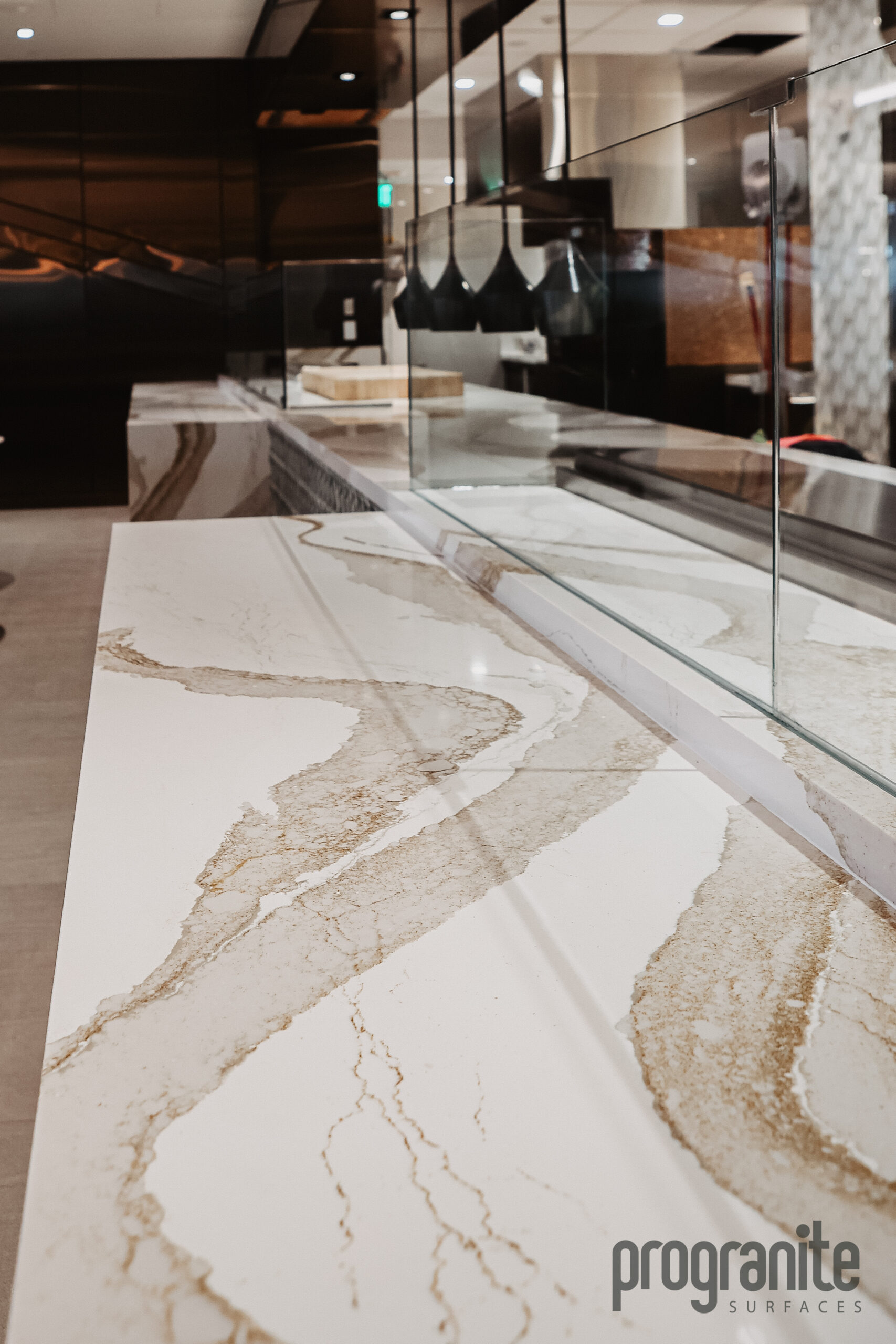 The Delta Sky Lounge project exemplifies the quality and precision that define ProGranite Surfaces in the Seattle Countertops industry. Designed for a public countertop lounge setting with heavy daily use, these commercial countertops were built to withstand high traffic while maintaining a polished, luxurious appearance. Using Cambria Brittanicca, a quartz material celebrated for its bold veining and durability, the installation blends elegance with performance—perfect for a space that welcomes thousands of travelers each day. This project highlights ProGranite’s expertise in creating high-traffic countertops that balance functionality, beauty, and long-lasting resilience.